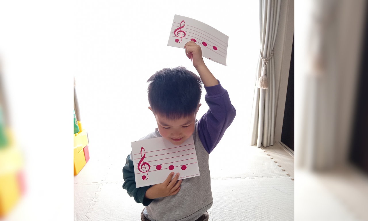 音符カードなどを使い、音楽を“勉強”ではなく“遊び”として体験します。