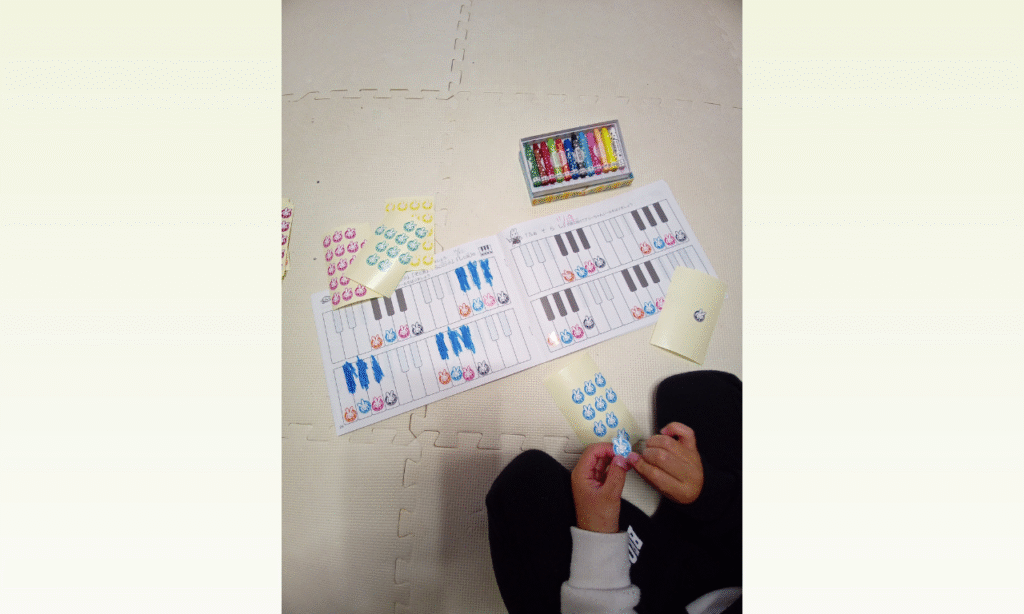 年中さん・・・音符ビッツで音の高さと並びが自然に入る時期。記号から意味のあるもの=「音符」に変わる時期